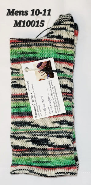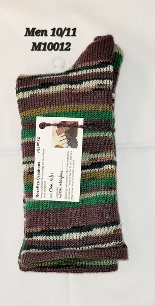 These socks are made from wool/nylon yarns on my antique circular sock machine. If the pair is labeled as Crazy Quilt they are made to Not Match!